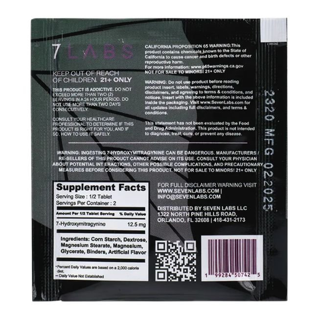 / 7 LABS 7-HYDROXY EXTRA STRENGHT 25MG PER TABLET 1CT/40PK
