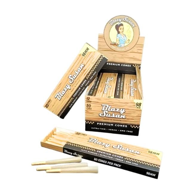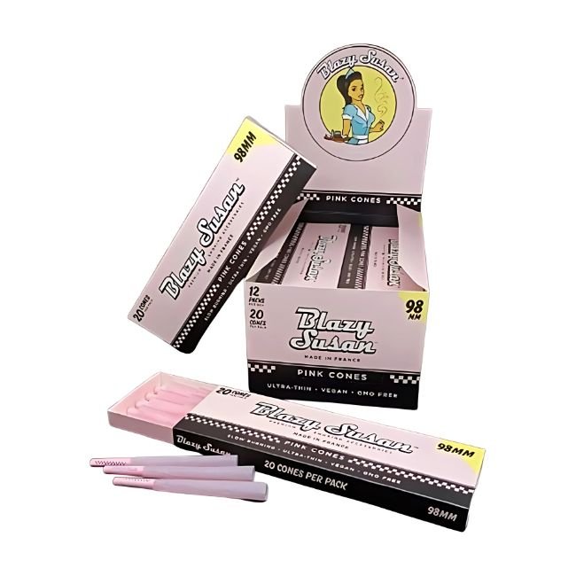 Upgrade your pre-roll presentation with the Blazy Susan 98mm 20PK Cones – 12CT Box, offering pre-rolled convenience, signature pink style, and smooth-burning quality for your daily sessions or store shelves. Perfect for retailers, connoisseurs, or anyone who values premium pink cones.