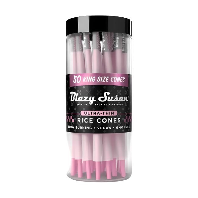 Elevate your roll with the Blazy Susan King Size Ultra Thin Rice Cones—crafted for smooth, flavorful smokes and effortless use. With 50 premium cones per jar, you’ll always be ready to roll, light, and enjoy. Ideal for smokers who appreciate quality, reliability, and flavor clarity.