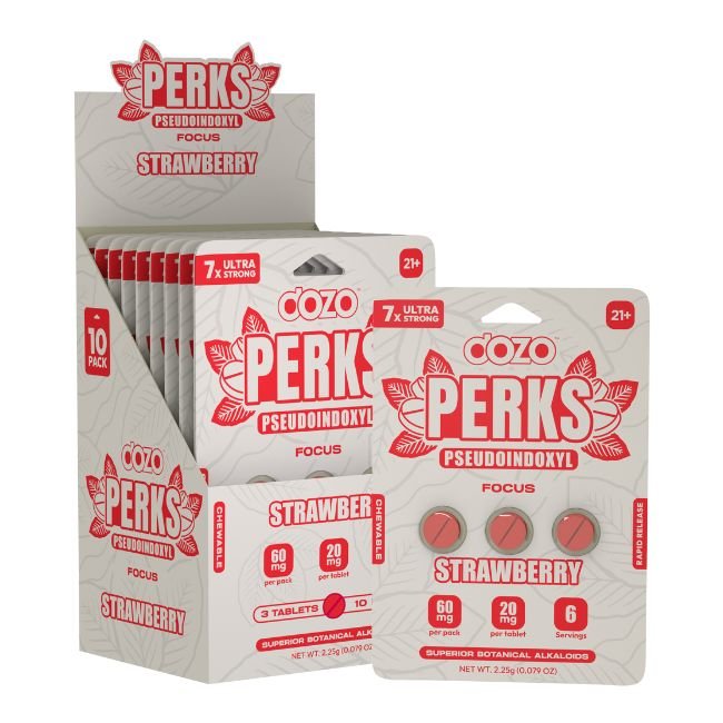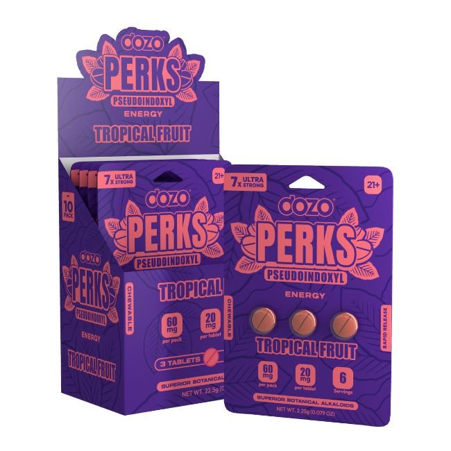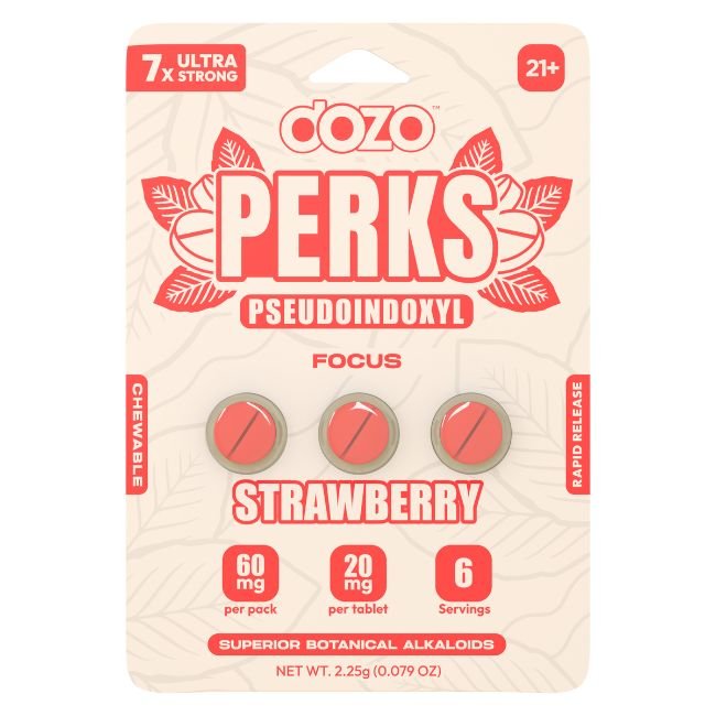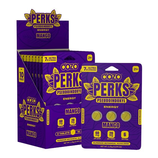 DOZO PERKS PSEUDOINDOXYL 7X Ultra Strong tablets are the ultimate solution for individuals seeking powerful performance support in a convenient, great-tasting format. With two distinct flavor options and a potent 20mg formula, this product is ideal for tackling your day with energy and focus. Choose your favorite flavor and experience the DOZO difference today.