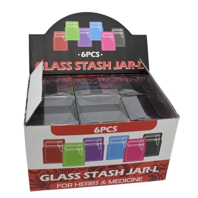 / GLASS STASH JAR-L FOR HERB & MEDICINE ASSORTED DESIGN 6CT DISPLAYS
