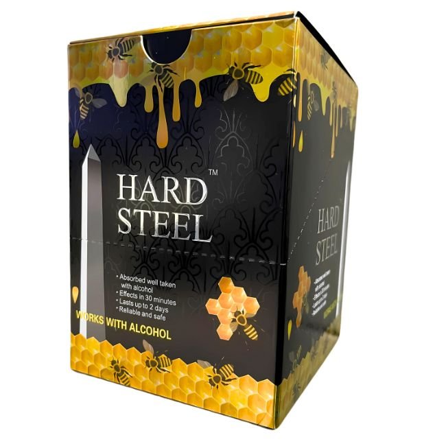 HARD STEEL MALE SEXUAL ENHANCEMENT HONEY is a potent and natural supplement designed to enhance male performance, boost libido, and improve stamina. This specially formulated honey comes in convenient, single-serving tubes, each packed with a powerful blend of herbal ingredients to support sexual vitality and endurance. It works effectively, even when combined with alcohol, providing a smooth, powerful enhancement without compromising your experience.
