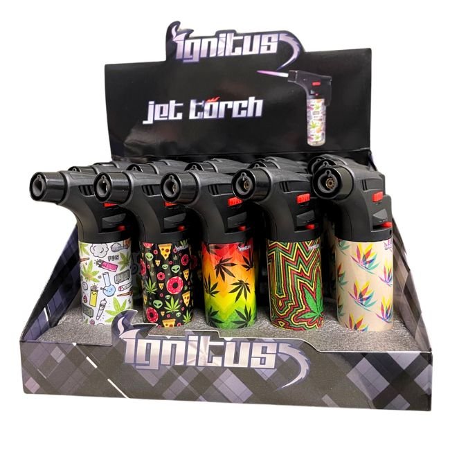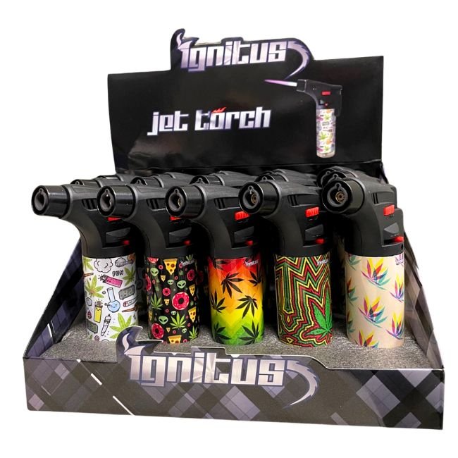 The Ignitus Jet Gun Torch Lighter (15ct Display) is a top-tier torch lighter designed for precision lighting with a unique jet gun design. Perfect for lighting cigars, candles, or for crafting purposes, this powerful torch features a strong jet flame and an ergonomic handle for easy use. With a 15ct display, this set is perfect for both retail displays and personal use, ensuring you have plenty of high-performance lighters on hand. Available in a variety of eye-catching designs, including Solid Colors, Frosted Colors, and Weedy Wrapped options, this collection offers style and functionality. Whether you’re looking for a professional, sleek look or a fun, unique design, the Ignitus Jet Gun Torch Lighter delivers a top-notch experience every time.