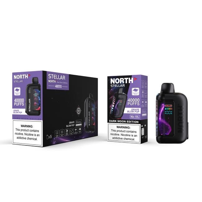 North Stellar Dark Moon Edition 5% Disposable Vape (100mL, 40K Puffs, 5ct Box) Upgrade your vaping experience with the North Stellar Dark Moon Edition 5% Disposable Vape—an exceptional disposable vape crafted by the trusted North Vape brand. Designed for enthusiasts craving powerful nicotine satisfaction, rich North flavors, and unbeatable longevity, this vape delivers up to 40,000 smooth, flavorful puffs without hassle or interruption. Why Choose the North Stellar Dark Moon Edition Disposable Vape? ✅ Extraordinary Puff Capacity With an industry-leading 40,000 puff count, this disposable vape significantly outperforms standard options, ensuring extended vaping satisfaction without frequent replacements or recharging. ✅…
