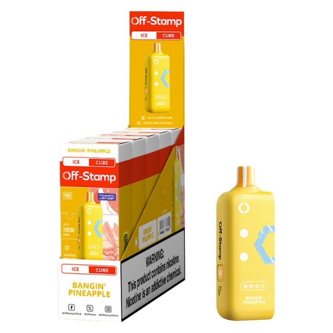 The OFF STAMP ICE CUBE is more than just a disposable vape – it’s a full-scale flavor system with industry-leading capacity, premium performance, and long-lasting satisfaction in every pod. Whether you’re craving a blast of icy mint, juicy fruit, or sour candy, there’s a flavor that hits just right. Perfect for retailers or dedicated users, this 5CT box of 25K puff monsters is your go-to for flavor, value, and serious cloud time.
