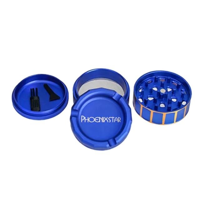 Enhance your grinding experience with the PhoenixStar 60mm 4-Part Fancy Metal Grinder, a high-performance tool designed for effortless grinding and superior style. Made from high-grade aluminum alloy, this grinder is lightweight yet durable, built to withstand regular use. Its 4-part construction includes a pollen catcher and scraper, ensuring you get the most out of each grind, while the magnetic lid keeps your herbs secure. Compact at 60mm, this grinder offers the perfect blend of portability and capacity, ideal for both solo and group sessions.