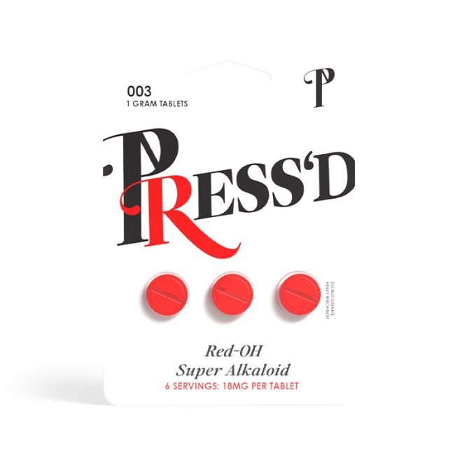 PRESSD 7-HYDROXYMITRAGYNINE RED-OH 5X STRENGHT 1GM 18MG PER TABLET 3PK 25CT/ BOX