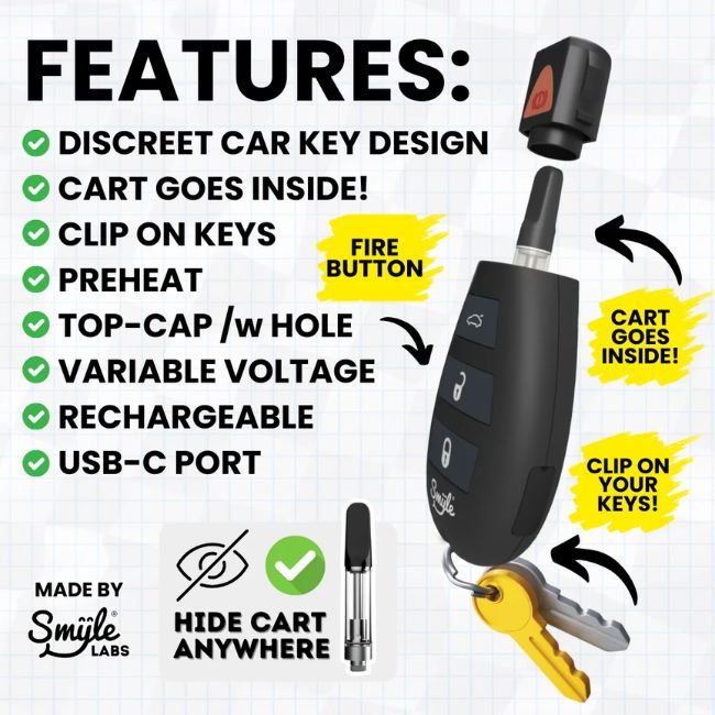 The Smyle Penjamin Car Key Edition Cartridge Battery is the perfect combination of style, portability, and performance. Designed with a unique car key shape, this compact battery offers the convenience of discreet, on-the-go vaping. Packaged in a convenient 5CT/box, this battery is compatible with most 510-thread cartridges, making it an excellent choice for vaping enthusiasts. Available in two sleek colours—Gold and Black—the Penjamin delivers a high-quality vaping experience while fitting comfortably in your pocket or keychain.