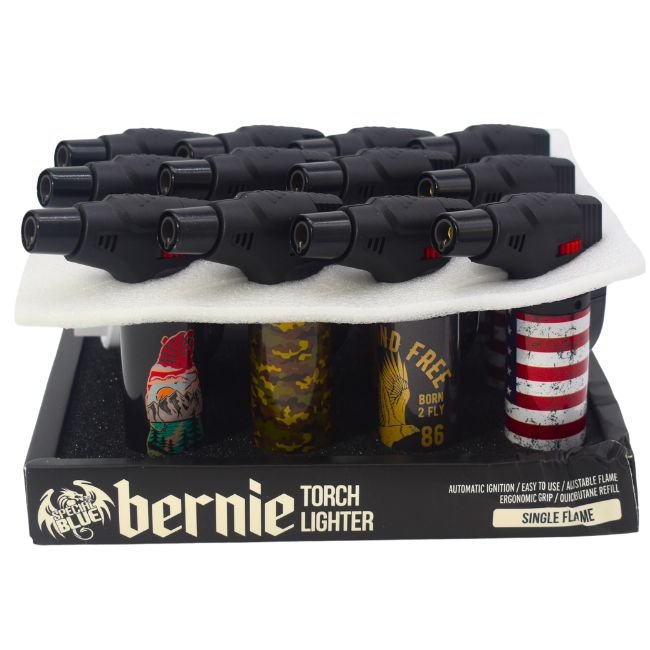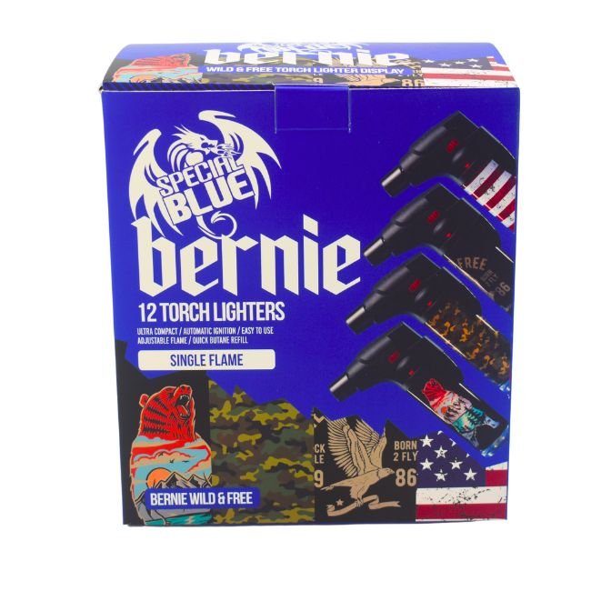 Experience the perfect fusion of style, functionality, and reliability with the Special Blue Bernie Wild & Fire Torch Lighter (LT168M) 12CT Display. Whether you’re lighting up your favorite cigar or embarking on outdoor adventures, trust Special Blue to deliver unparalleled performance and quality with every flick of the flame.