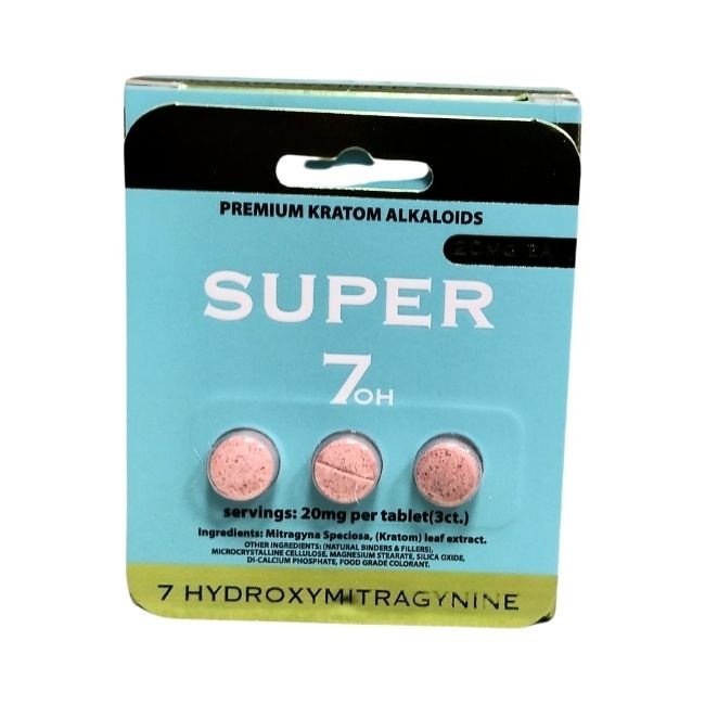 SUPER 7 HYDROXYMITRAGYNINE PREMIUM KRATOM ALKALOIDS 20MG PER TABLET 3PK 10CT/ BOX