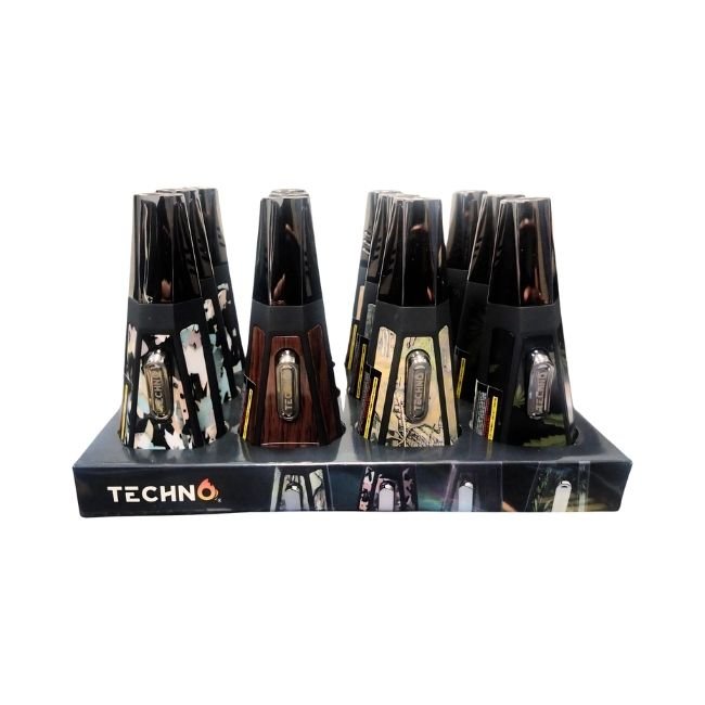 TECHNO TRIANGLE SHAPE ASSORTED DESIGN TORCH LIGHTER 12CT/ DISPLAY