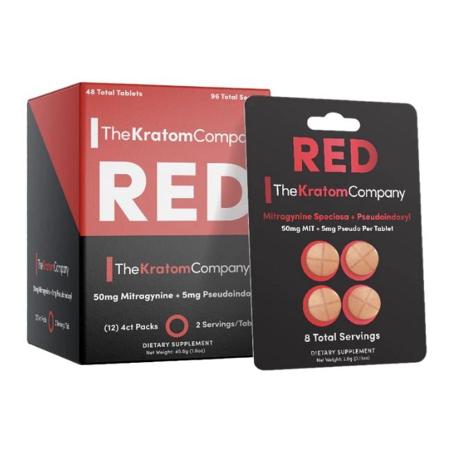 / THE KRATOM COMPANY 50MG MITRAGYNINE + 5MG PSEUDOINDOXYL RED TABLETS 4PK 12CT/ BOX