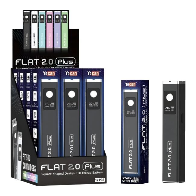 YOCAN FLAT 2.0 PLUS CARTRIDGE 900mAH VAPE BATTERY ASSORTED COLOR 12CT/ DISPLAY