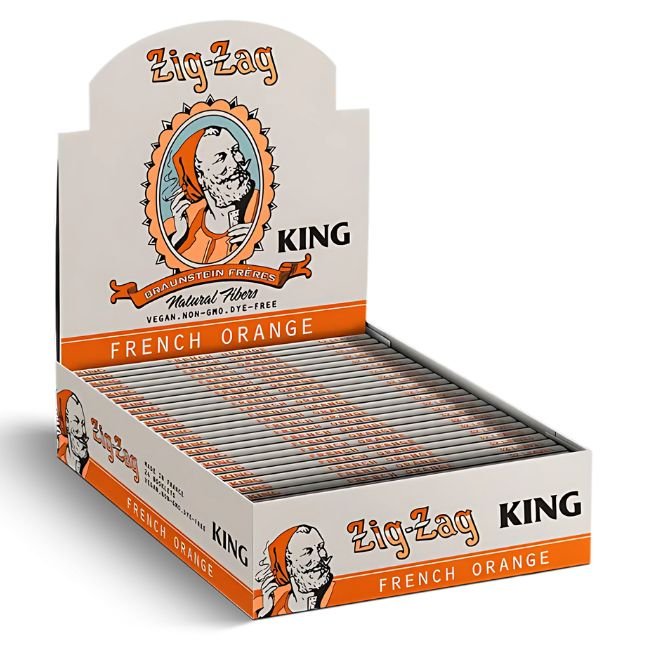- French Orange King: A larger paper designed for those who prefer a king-size roll. This smooth, natural gum paper provides a perfect canvas for your smoking experience.