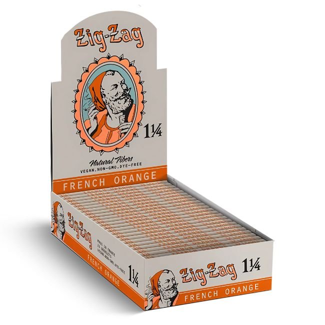 - French Orange 1-1/4: A popular size for those who like a bit more room than standard papers, offering an easy, comfortable rolling experience with a natural flavor.