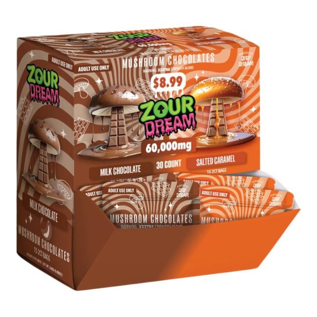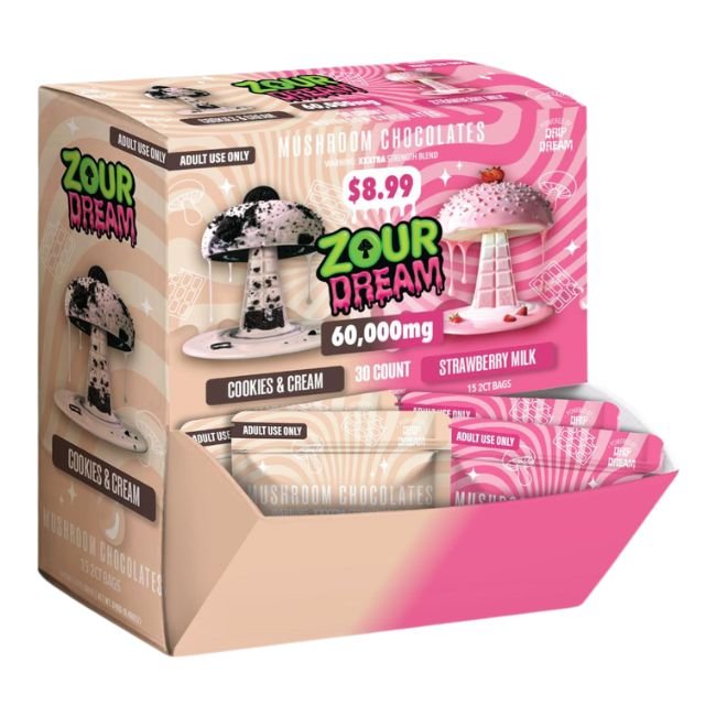 ZOUR DREAM X DRIP DREAM MUSHROOM XXXTRA STRENGHT 60,000MG CHOCOLATES 2CT/30PK DISPLAY